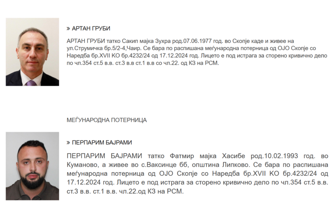 Kërkohet Artan Grubi dhe Përparim Bajrami, MPB publikoi fletarrestimet ndërkombëtare