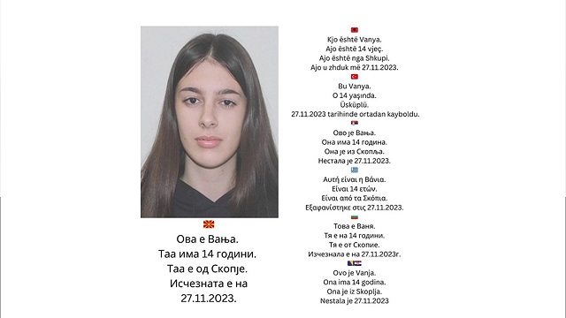 Gjendet e pajetë 14 vjeçarja, Vanja Gjorçevska