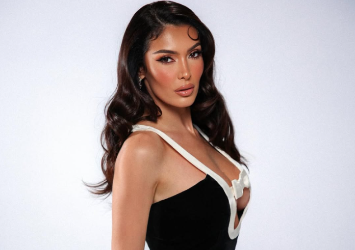 Fustani i zi me detaje të bardha i shfaqte në pah linjat e tonifikuara trupore të artistes, që nuk kishin se si të mos binin në sy.