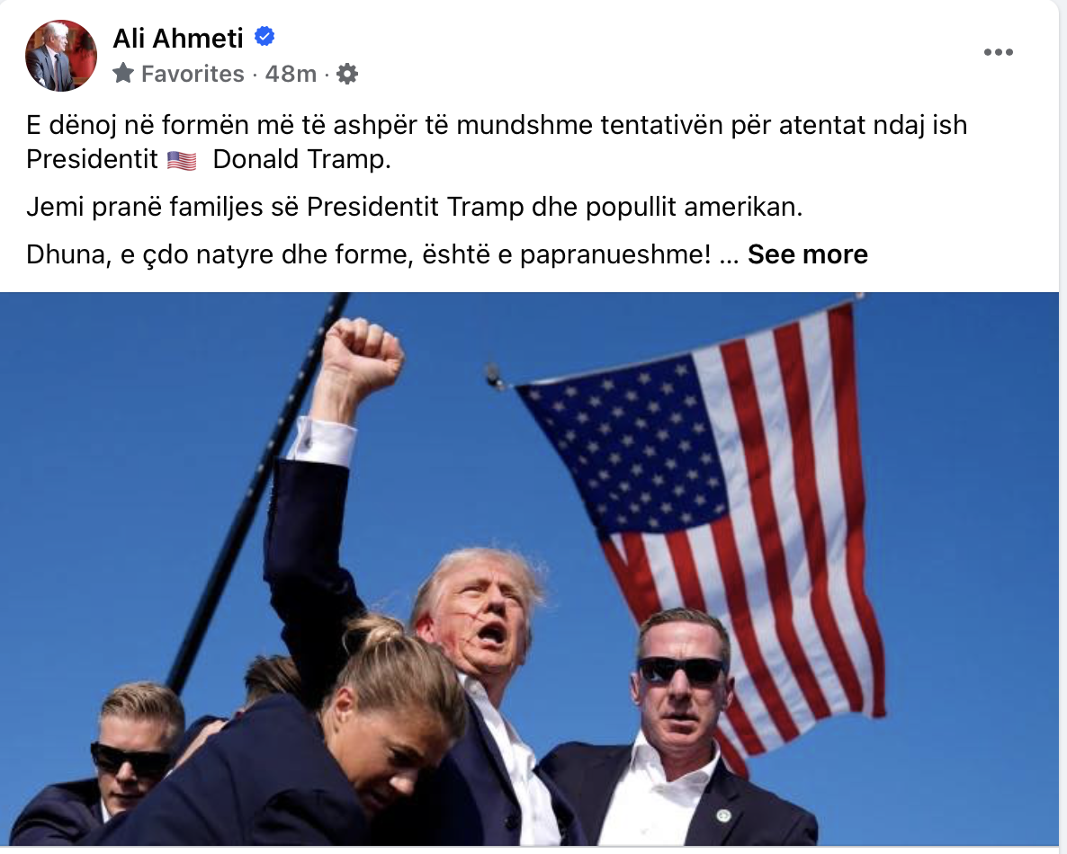 E dënoj në formën më të ashpër të mundshme tentativën për atentat ndaj ish Presidentit Donald Tramp.