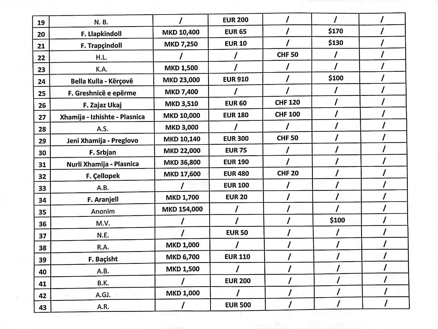 Ju paraqesim tabelën donacioneve të pranuara, duke e lutur Allahun Fuqiplotë të pranojë nga të gjithë ju kontributin tuaj!