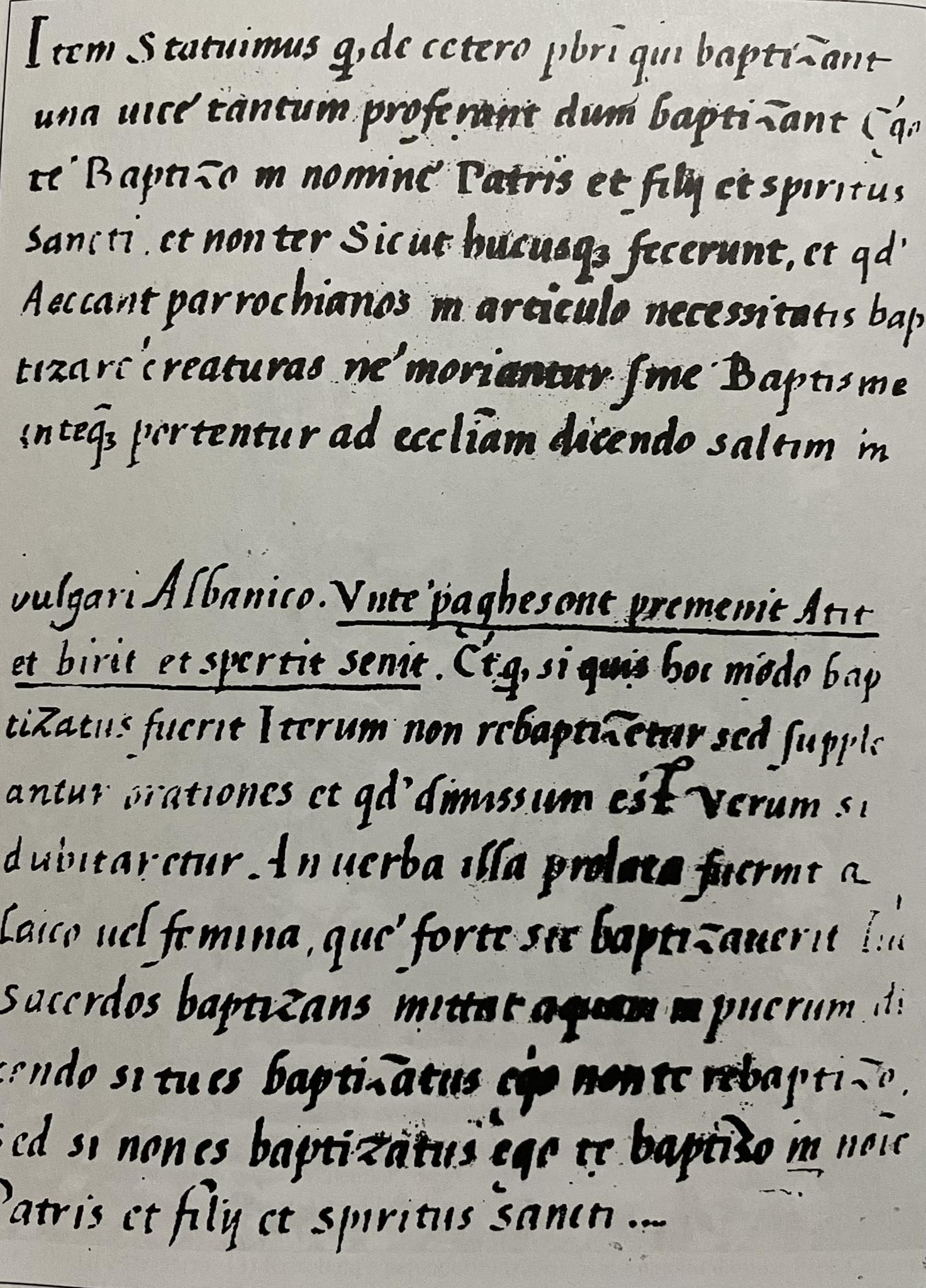 Arbërit me theksimin e kësaj fjalie pagëzoheshin ne gjuhën e tyre, me te cilën synohej, si në udhëheqjen politike te Skënderbeut, edhe në fushën e ushtrimit të riteve kishtare nga Pal Engjëlli si kryepeshkop, të shtrihej udhëheqja në territorin që ish krijuar mbretëria e përqendruar.