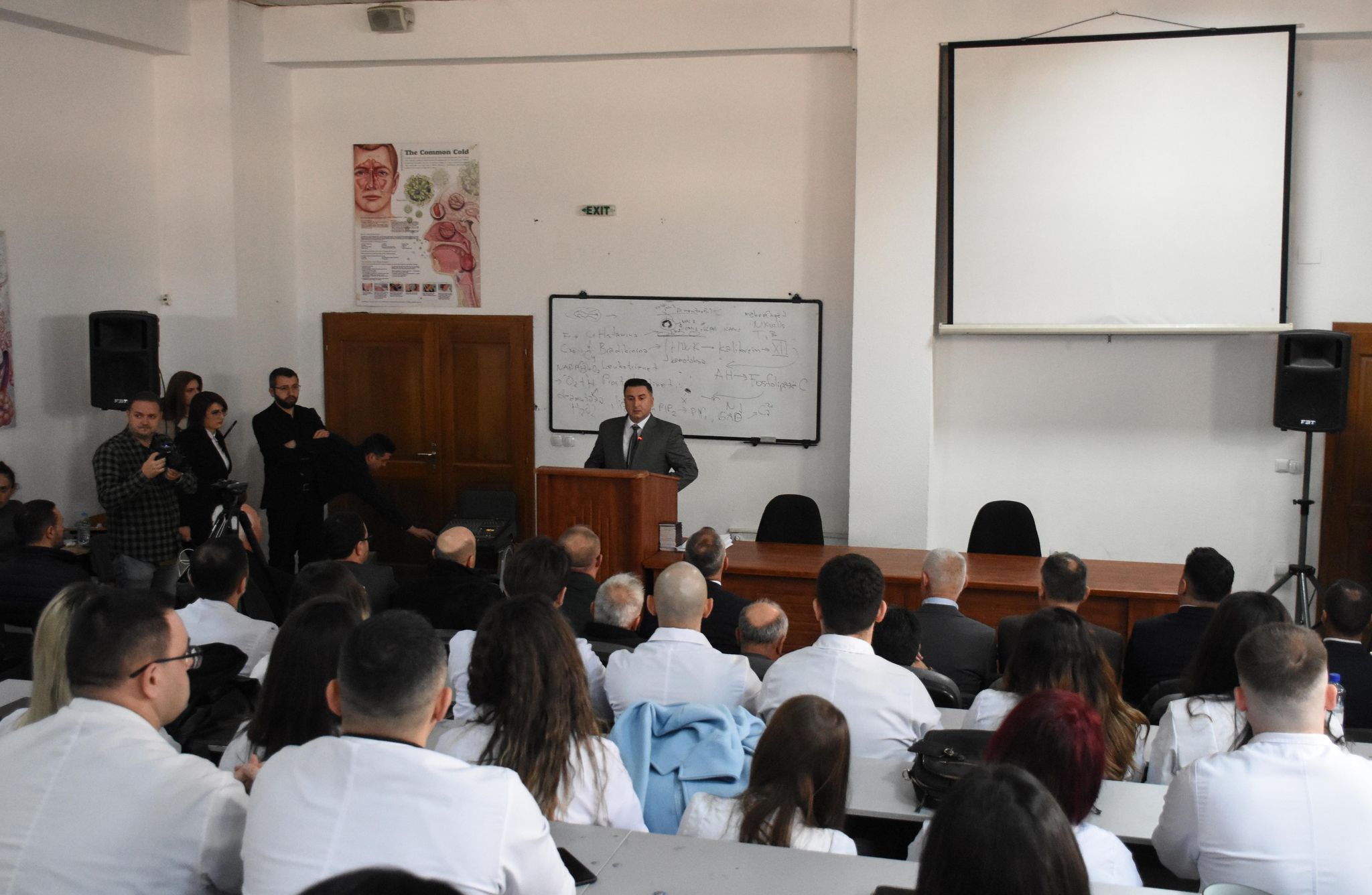 Mirëseardhje të pranishmëve u uroi Rektori i Universitetit të Tetovës, Prof. Dr. Jusuf Zejneli. Ai tha se ngjarja që po e shënojmë sot për të dhe Universitetin e Tetovës është shumë speciale për arsye se sot po ndahen edhe zyrtarisht vendimet për specializim të profesionistëve dhe bashkëpunëtorëve të shëndetësisë me arsimim të lartë në fushën e mjekësisë. “Specializimet në shkencat mjekësore janë një hap i rëndësishëm për Universitetin tonë sepse këto programe të specializuara mjekësore u mundësojnë të gjithë punonjësve shëndetësorë të hapin shtigje të reja karriere në aspekt profesional dhe akademik. Meqenëse mjekësia përfshin degë dhe specialitete të ndryshme, ofrimi i këtyre programeve të specializuara siguron që mjekët të kenë mundësi të ndjekin fushat e tyre specifike të interesit. Specializimet adresojnë nevojat në zhvillim dhe komplekse të sektorit të kujdesit shëndetësor. Duke u fokusuar në disiplina specifike mjekësore, Universiteti ynë do t’i përgatitë më mirë profesionistët e ardhshëm të kujdesit shëndetësor, për të trajtuar sfidat e ndryshme shëndetësore, për të përmirësuar kujdesin ndaj pacientëve dhe për të kontribuar në mënyrë domethënëse në fushat e tyre përkatëse. Programet e specializuara kontribuojnë ndjeshëm në avancimin e njohurive dhe ekspertizës mjekësore. Ato u mundësojnë mjekëve të gërmojnë më thellë në fusha specifike të kërkimit dhe inovacionit, duke çuar në zbulime, përparime dhe praktika të përmirësuara mjekësore. Jemi shumë të lumtur që universiteti i Tetovës tanimë është pjesë e universiteteve që ofrojnë një gamë të gjerë programesh të specializuara mjekësore sepse në këtë mënyrë ne do të krijojmë bashkëpunime dhe partneritete me institucionet e kujdesit shëndetësor, qendrat kërkimore dhe ekspertët e industrisë. Këto partneritete mund të çojnë në mundësi për punë praktike, si dhe mundësi për t’u bashkuar në projekte të ndryshme kërkimore. Në thelb, nëpërmjet programeve të specializuara mjekësore, ne si Universitet rritim pozitën tonë akademike, nxitim kërkimin dhe inovacionin, krijojmë partneritete dhe përmbushim nevojat dhe interesat specifike të studentëve që ndjekin karrierën e tyre në mjekësi.” - tha Rektori i Universitetit të Tetovës, Prof. Dr. Jusuf Zejneli.