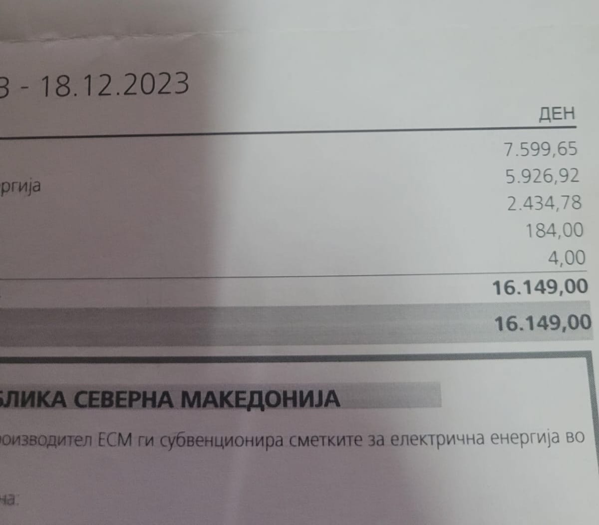 Në rrjetet sociale, një sërë qytetarësh në Maqedoninë e Veriut ndajnë faturat e muajit dhjetor për rrymë, për të cilat ankohen se janë më të larta se zakonisht.