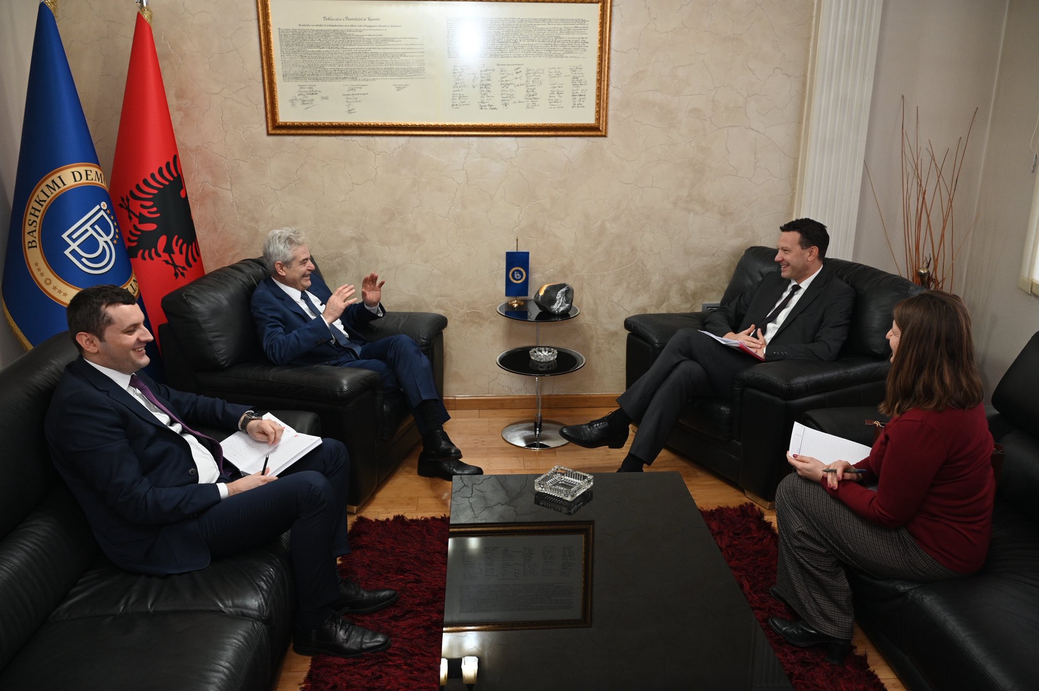 Gjatë bisedës shkëmbyem qëndrime mbi situatën aktuale politike në vend, si dhe mbi sfidat që e shoqërojnë këtë periudhë, me theks të veçantë në marrëdhëniet ndëretnike dhe proceset integruese.